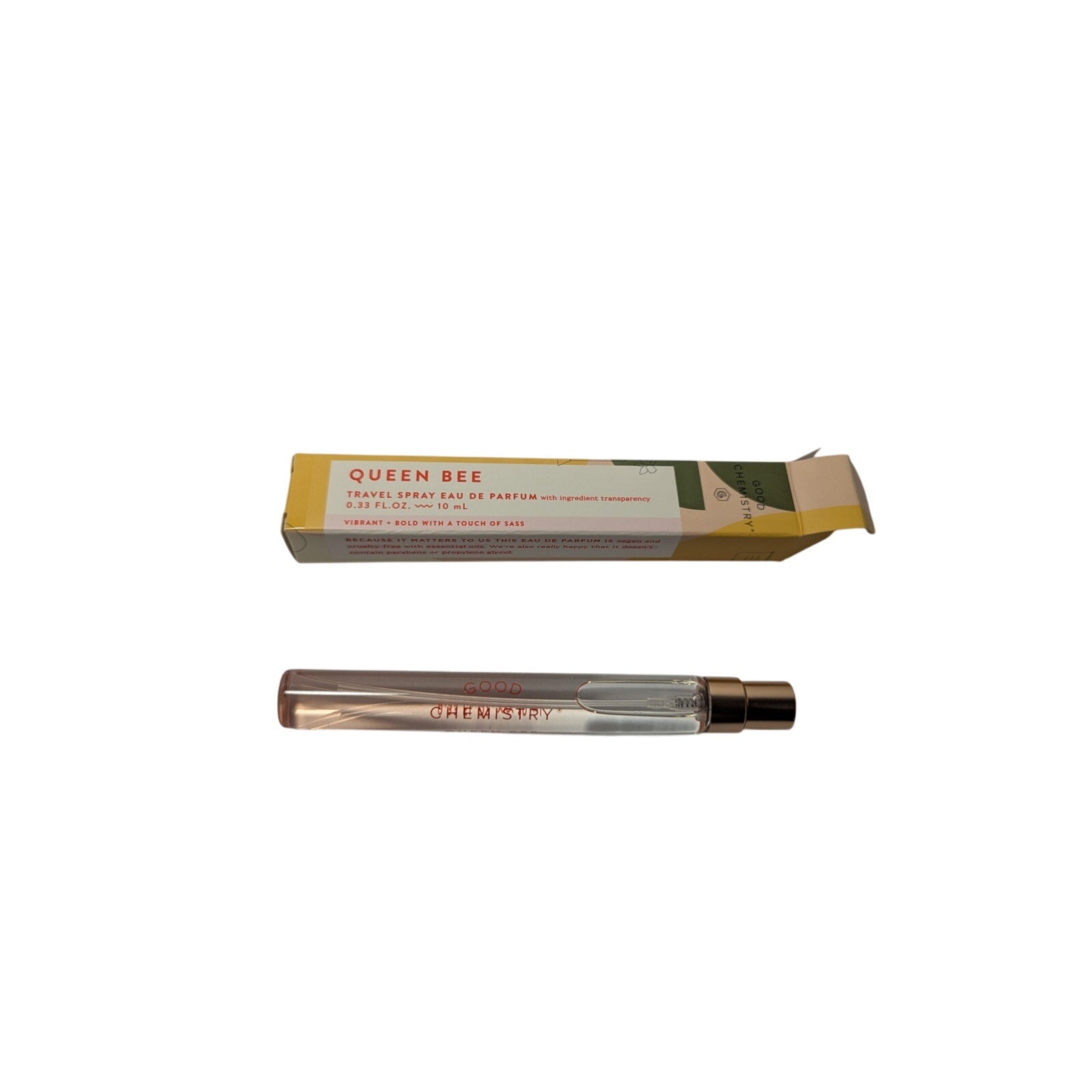 Spritz on some sunshine with this delightful Good Chemistry Queen Bee Travel Spray! This convenient 10mL bottle is perfect for on-the-go fragrance touch-ups, keeping you feeling fresh and confident all day long.